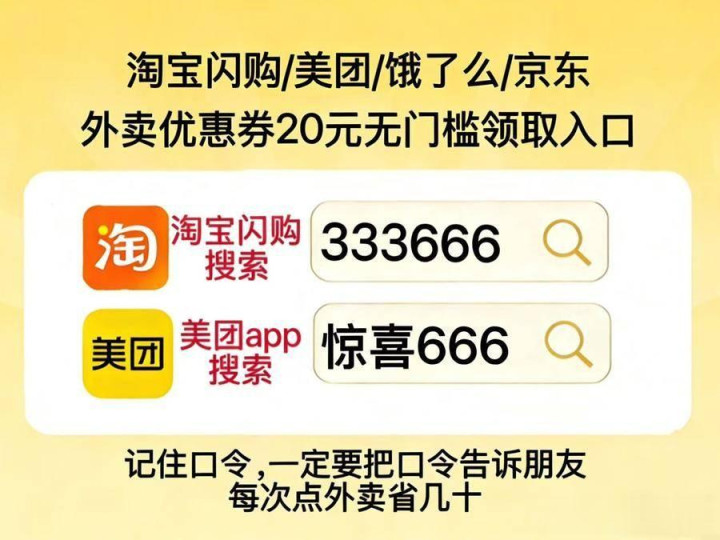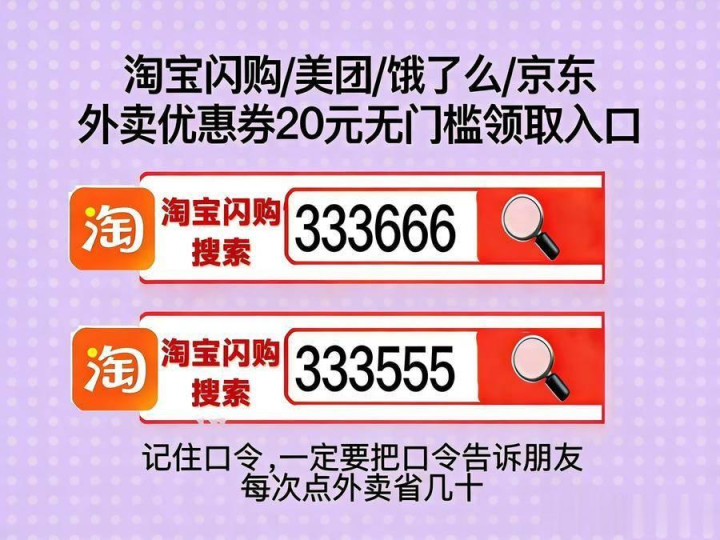 淘宝闪购外卖券领取淘宝闪购搜【333666】【333555】,淘宝闪购外卖券重复券领取进口是淘宝闪购搜【333666】,大零星卖红包口令、闪购外卖优惠券外卖神券口令是淘宝闪购搜【333555】领外卖神券包。