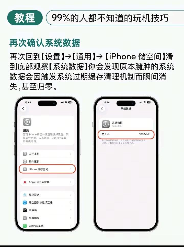 在完成时刻疗养并恭候一段时刻后,用户应再次回到iPhone储存空间界面,再行检察系统数据的占用大小。此时时时会发现,正本肥胖的系统数据体积出现了显耀下跌,致使可能从20GB骤降至几百MB,开释出巨大的可用空间。这一景色解说了手动疗养时刻见效触发了系统的深度清算功能,断根了弥远积压的无谓缓存。这种法式的机要之处在于专揽了系统自己的讴歌逻辑,幸免了繁琐的手动删除过程,杀青了信得过兴致兴致上的“一键”清算。
