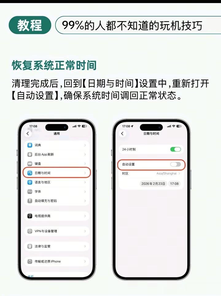 清算使命完成后,大发官方网站至关病笃的一步是将系统时刻还原平方。用户需再次插足日历与时刻诞生,再行开启自动诞生开关,确保诞生时刻与收罗时刻同步。若弥远保持不实的时刻诞生,不仅会导致种种应用无法平方联网,还可能影响音信推送、文凭考证等中枢功能的平方使用。因此,还原正确时刻是所有清算经由中不能或缺的捣毁要道,确保了手机在开释空间的同期,依然不祥褂讪高效地启动。